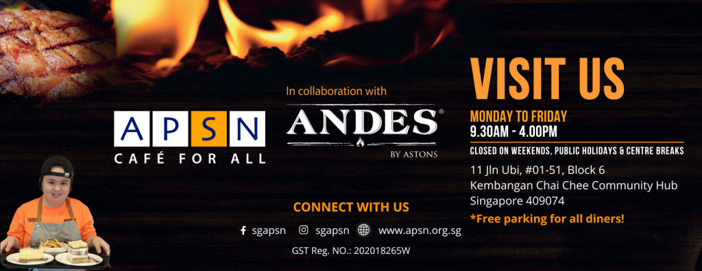 In collaboration with ANDES by ASTONS, we bring you APSN CAFÉ FOR ALL & ANDES by ASTONS. Together, we work doubly hard to deliver quality and affordable meals. We welcome you to a unique dining experience that will showcase the best of our abilities.