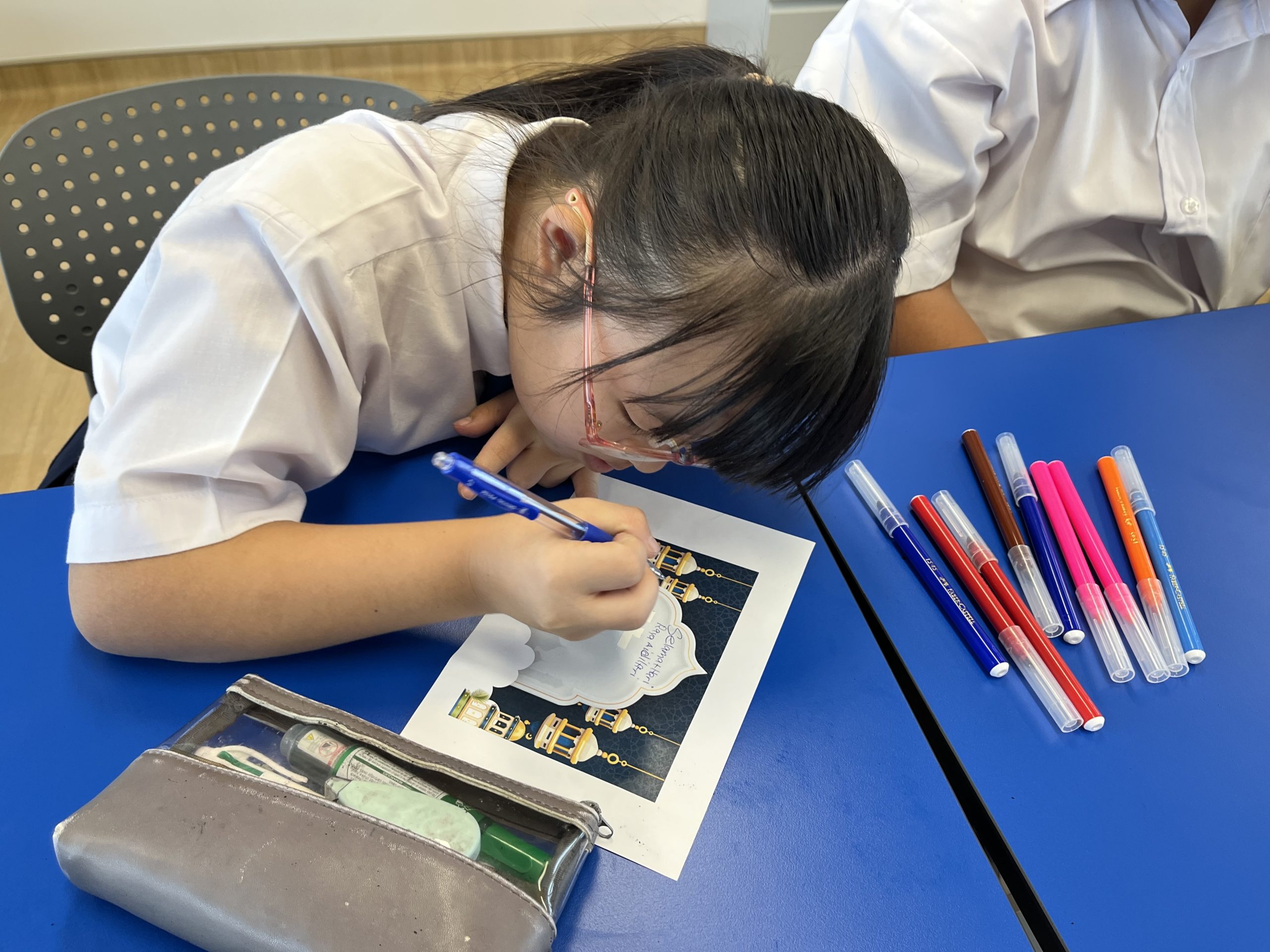 Students then participated in a Deepavali quiz, exploring the traditions and practices of the festival to deepen their understanding. This was followed by a creative activity where students made paper diyas, which were hung as garlands and displayed at the school entrance to enhance the decorations. Each student also received a bag of Murukku snacks to enjoy.