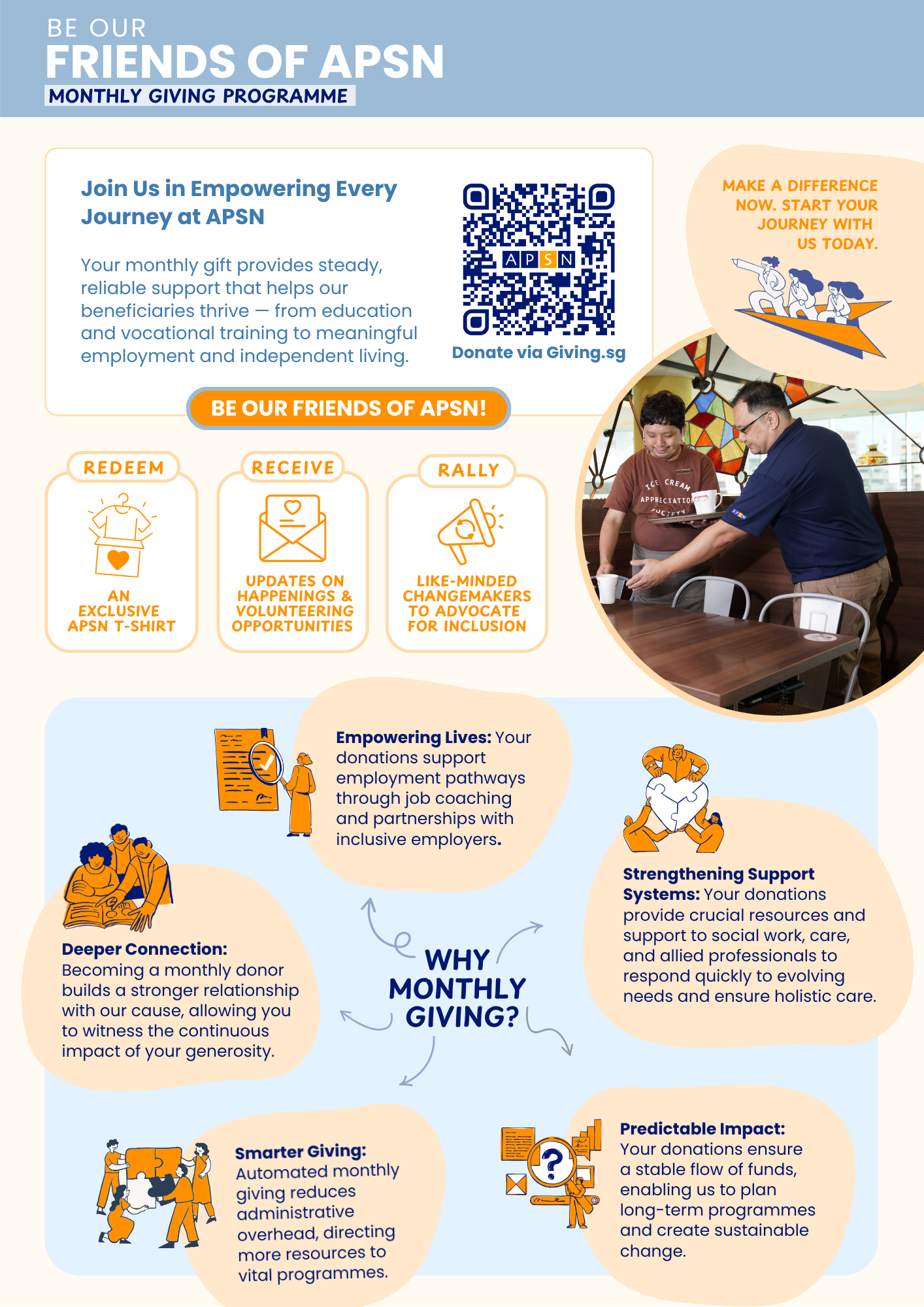 APSN respects donors’ confidentiality. By submitting your donation, we have added you into our donor mailing lists for processing donations, donor relationship management, fund raising and communications. To opt out of receiving communication materials for our donors, kindly email partnerships@apsn.org.sg with the subject heading “Unsubscribe”.